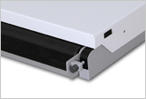 Maszyna posiada regulowaną, rolkową sekcję zawijania i zacisku brzegów okleiny, co umożliwia montaż okładek z udziałem tekturek montażowych o grubości 5mm.