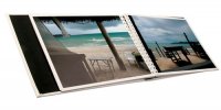 Zdjęcia z fotolabu lub wydrukowane indywidualnie kleimy ze sobą (dwa zdjęcia) krótką zewnętrzną krawędzią . Tak przygotowane zdjęcia łączymy z indywidualnie przygotowaną okładką za pomocą grzbietu drucianego 3:1 lub 2:1 oprawiając zdjęcia razem z okładką