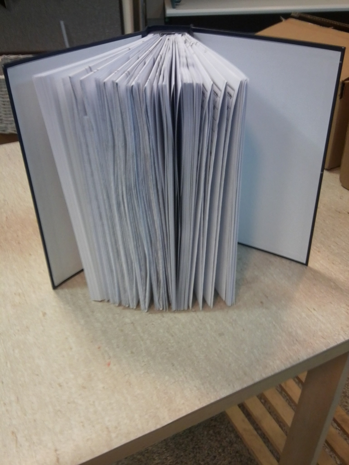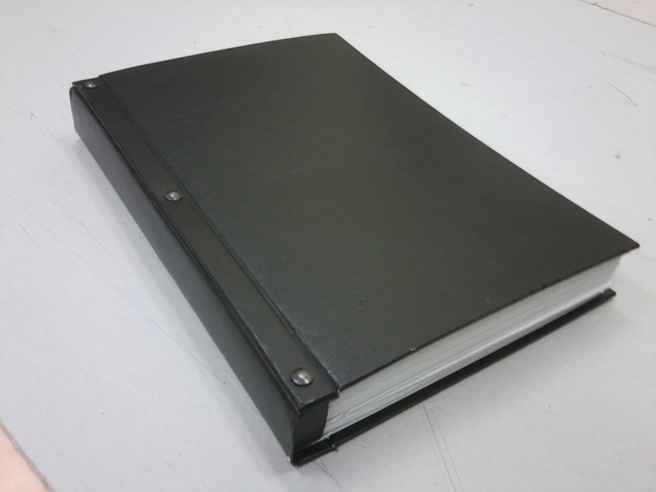 Składa się z dwóch okładek: twardej z miękkim grzbietem 12 cm i twardej tylnej. Zszyte dokumenty łączymy z okładkami za pomocą kleju lub gwoździ introligatorskich. Okładkę dopasowujemy do grubości dokumentu odcinając jej nadmiar.