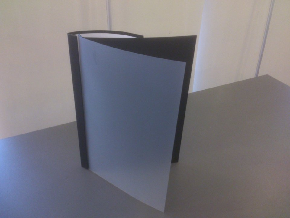 Składa się z dwóch okładek: przedniej ze sztywnej folii matowej przezroczystej z miękkim grzbietem 12 cm i twardej tylnej. Zszyte dokumenty łączymy z okładkami za pomocą kleju lub gwoździ introligatorskich. Okładkę dopasowujemy do grubości dokumentu odcinając jej nadmiar.