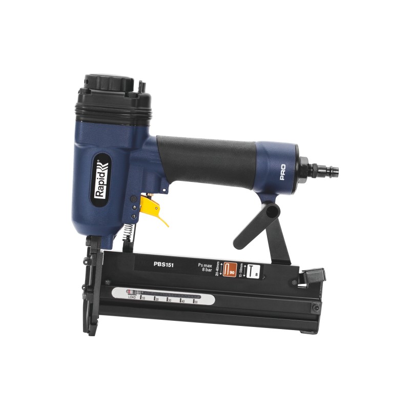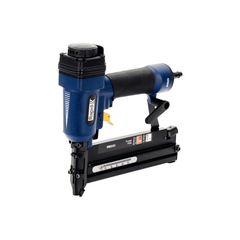 Pneumatyczna zszywaczo-gwoździarka Rapid PRO PBS151 na zszywki Rapid 90 i gwoździe Rapid 8. Dzięki małym gabarytom i niskiej wadze znajduje wszechstronne zastosowanie w pracowniach tapicerskich, robotach wnętrzarskich i konstrukcyjnych.