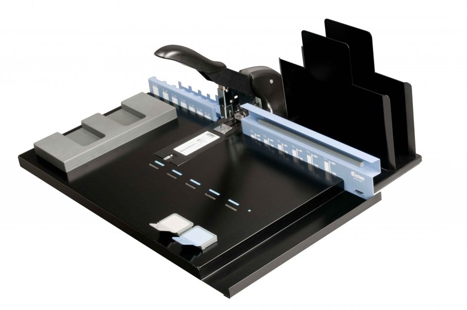 Urządzenia BooXTer Zero Max to mini stanowisko do zszywania pliku kartek wraz z wyklejkami samoprzylepnymi BooXTer i lokowania zszytych plików w gotowych okładkach twardych BooXTer. Wyposażony w manualny zszywacz i blat roboczy ułatwiający precyzyjne zszycie pliku fotoksiążki i ulokowanie zszytego wnętrza we wspomnianych okładkach twardych.