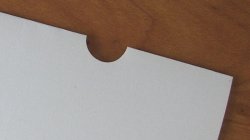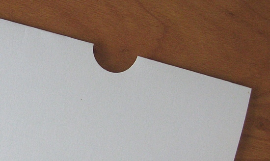 Wycinak ułatwiającą precyzyjne wykonanie półokrągłego otworu np. na zawieszkę do kalendarza - zawsze w tym samym miejscu dzięki prowadnicy.