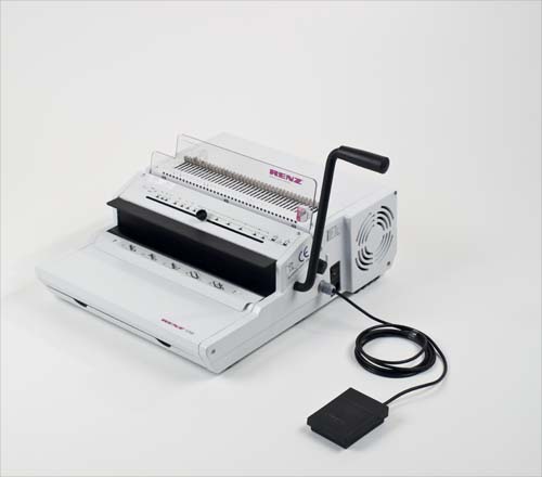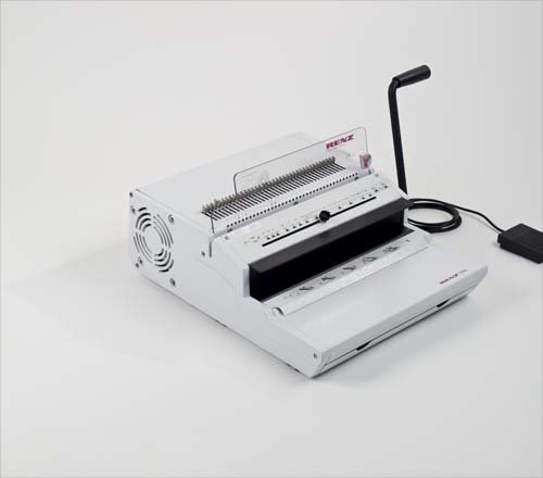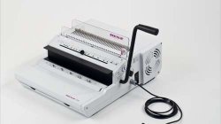 • Dwufunkcyjna bindownica do oprawy w spirale drucianą zamykaną 3:1, elektryczne dziurkowanie i reczne zaciskanie. Przystosowana do zastosowań profesjonalnych poprzez wykorzystanie zaawansowanych technologii w mechanizmach dziurkujących. Idealne rozwiązanie dla małych i średnich nakładów Wyzwalanie dziurkowania za pomocą pedału, 38 odłączanych noży, regulowany margines dziurkowania, szerokość dziurkowania do  34 cm. Dziurkuje do 25 kartek (2.5 mm) i oprawia do 135 kartek.