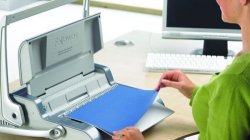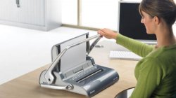 • System dziurkowania pionowego umożliwia niezależne dziurkowanie i nakładanie dokumentów na grzbiet, ułatwia i przyspiesza czas oprawy