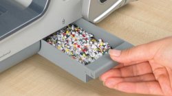 • Duża szuflada na ścinki z systemem samoczynnego otwarcia boków przy przepełnieniu zapobiega zakleszczeniu