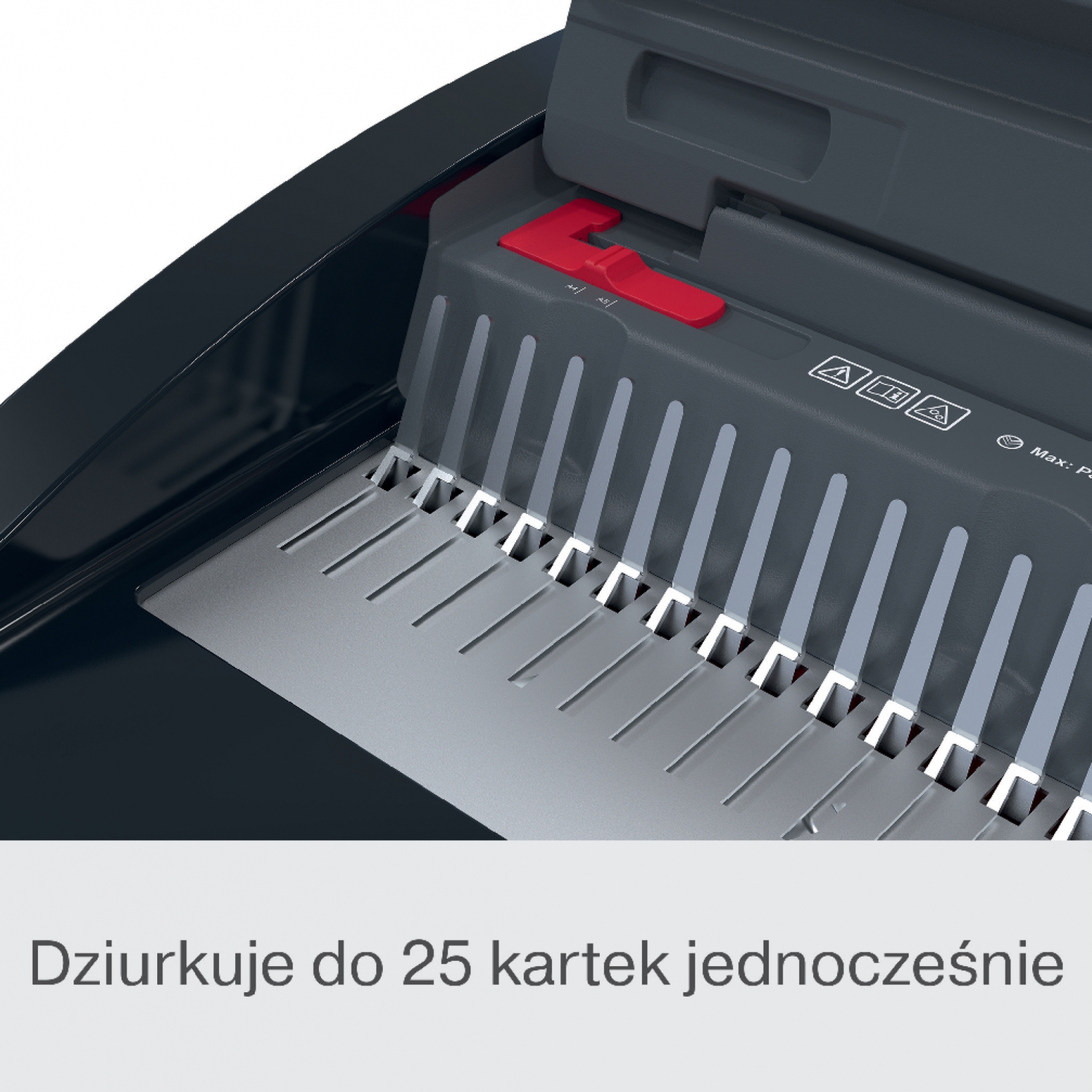 - Dziurkuje do 25 kartek (80 g/m²) jednocześnie.