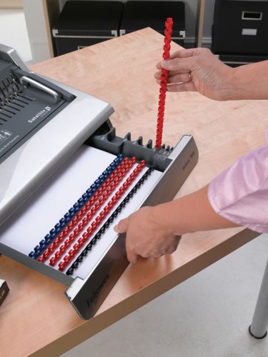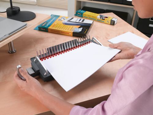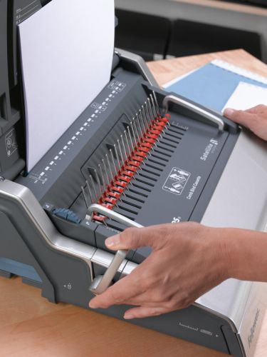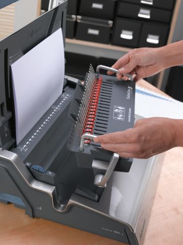 Bindownica do użytku w dużym biurze, System dziurkowania pionowego umożliwia niezależne dziurkowanie i nakładanie dokumentów na grzbiet co ułatwia i skraca czas oprawy