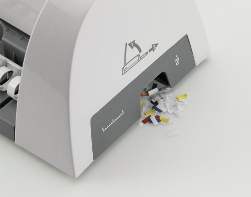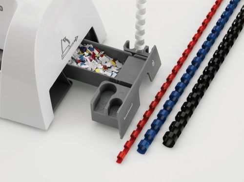 • Specjalna szuflada na ścinki z opatentowanym systemem mierzenia grubości dokumentów i doboru odpowiedniego grzbietu
