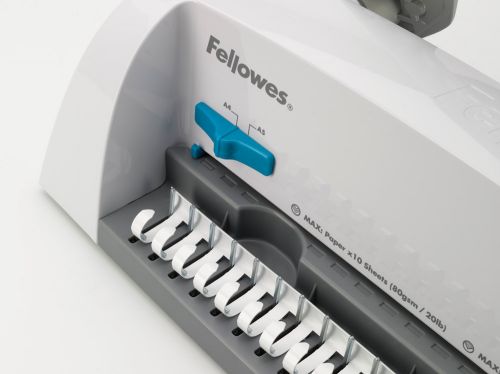 • Jednorazowo dziurkuje do 10 kartek A4 (80 g), może oprawiać dokumenty o grubości do 120 arkuszy, maks. średnica grzbietu 16 mm