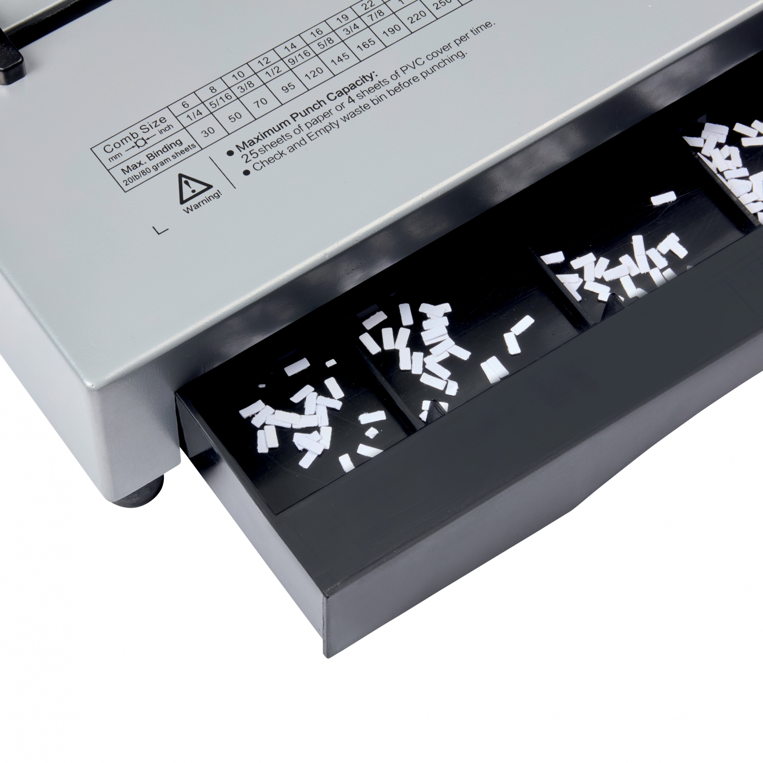 CombBind® CB25 Pro to niezawodna i wytrzymała elektryczna bindownica do oprawy w grzbiet plastikowy, zaprojektowana z myślą o usprawnieniu codziennych zadań w biurze, domu i szkole.
