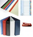 Pozostałe formy oprawy uzupełniające ofertę. Do dyspozycji są materiały do oprawy doraźnej takie jak plastikowe listwy wsuwane w róznych rozmiarach i kolorach oraz popularne klipy biurowe. Ponadto można wykonać oprawę przy użyciu segregatorów z przezroczystą kieszenią frontową (panoramicznych). Po przedziurkowaniu materiałów umieszczamy je w segragetorze, którego okłądkę mozna cłakowicie personalizować. Metoda ta doskonale sprawdzą się przy przy sporządzaniu dokumentacji technicznej ruchowej oraz wszelkiego rodzaju instrukcji i skryptów. Poza oprawą, materiały można poddać archiwizacji. W tym celu są do dyspozycji klasyczne segregatory z mechanizmem, skoroszyty wpinane i trwałe, mogące pomieścić znaczne ilości dokumentów teczki tekturowe. Wszystkie te elemnty można umieścić w róznych rozmiarach pudłach i pojemnikach archiwizacyjnych. Ofertę uzupełniają szeroko pojęte akcesoria. Elementy, które mogą znaleźć swoje zastosowanie we wcześniej wyszczególnionych sposobach archiwizacji lub tworzyć wykorzystywane doraźnie oprawy typu wewnątrzbiurowego. Należą do nich m.in. przekłądki do segregatorów, paski do wpinania, skoroszyty, wąsy i klipy skoroszytowe i archiwizacyjne oraz koszulki (kieszenie na dokumenty).
