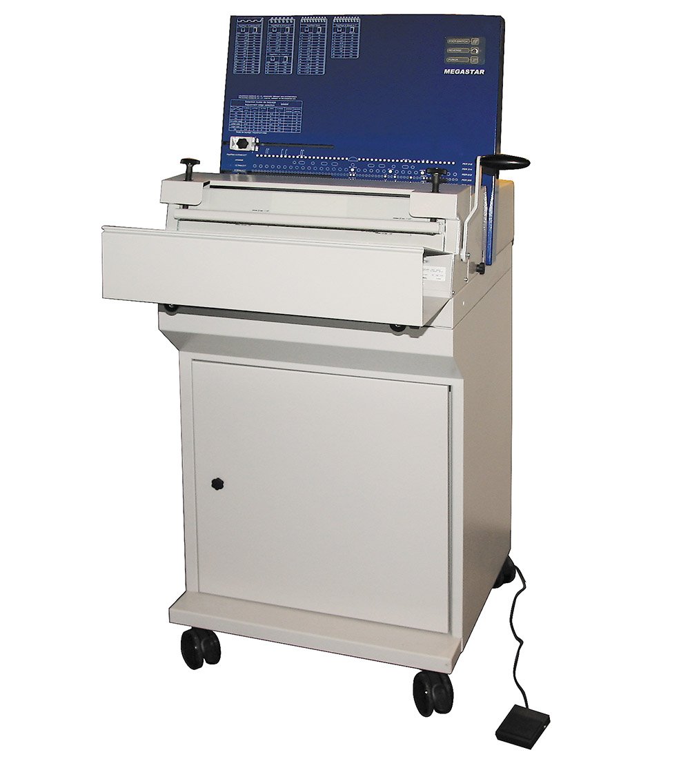 Produkcyjny zestaw bindowniczy wyposażony w szafkę na rolkach z wygodnymi półkami bocznymi. OPUS MEGASTAR – Master Unit został zaprojektowany specjalnie, by spełnić wszystkie wymagania użytkowników, jednocześnie zapewniając profesjonalizm i wysoką wydajność bindowania. Dzięki nożom OPUS STARunit, OPUS Wire STARunit, OPUS Wire STARunit + Tumb cut możliwia oprawę dokumentów w 7 różnych systemach bindowania. Posiada wszystkie cechy oraz funkcje niezbędne do intensywnego użytkowania. Do urządzenia można dokupić także zaciskarkę OPUS Wire STARbinder służącą do zamykania wszelkich grzbietów drutowych oraz rozciągarkę OPUS STARbinder służącą do otwierania i zamykania grzbietów plastikowych. Urządzenie szczególnie polecane do drukarni i zakładów poligraficznych.