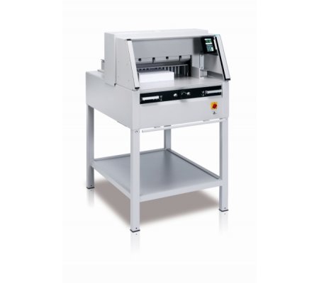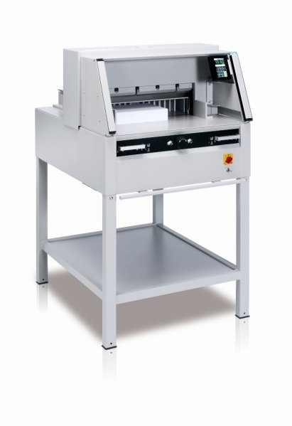 Nowa gilotyna do cięcia papieru z automatycznym napędem docisku i dotykowym panelem sterowania.