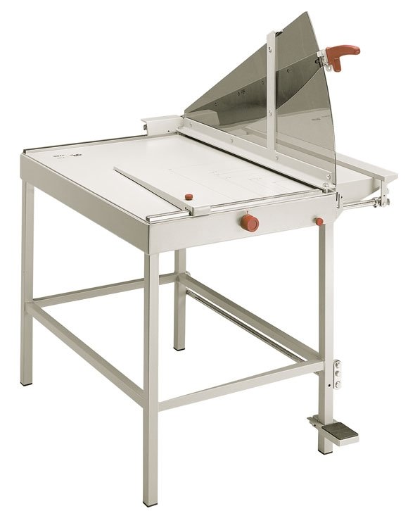 IDEAL 1110 to jedna z obcinarek nożycowych rozbudowana o stojak, pozwalający na zastosowanie nożnego docisku obcinanego materiału. Masywne, metalowe korpusy tego modelu wyposażone są w przezroczystą osłonę noża i ruchomy ogranicznik formatu. Specjalne noże ze stali ”Solingen” tną nie tylko papier i tekturę, ale również materiały grubsze: linoleum i plastyczne tworzywa sztuczne.