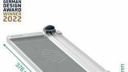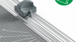 Niezwykle gładka powierzchnia blatu z naniesionymi liniami siatki metrycznej, oznaczeniami kątów i formatów, ułatwia precyzyjne cięcie papieru