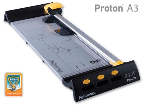 • Zawiera bezpieczną w użyciu unikalną kasetę Fellowes SafeCut™ z ostrzem ze stali nierdzewnej, ostrze pozostaje cały czas w osłonie kasety, jest wysuwane tylko w momencie cięcia
