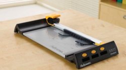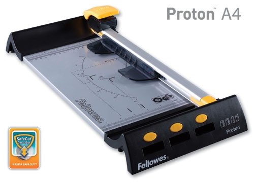 • Zawiera bezpieczną w użyciu unikalną kasetę Fellowes SafeCut™ z ostrzem ze stali nierdzewnej, ostrze pozostaje cały czas w osłonie kasety, jest wysuwane tylko w momencie cięcia
