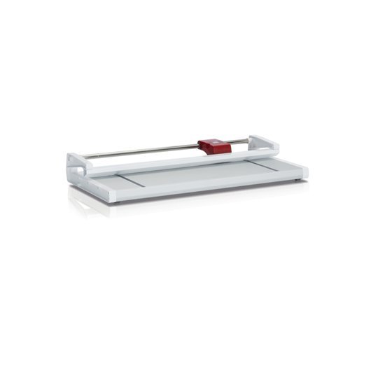 Nadaje się do cięcia i przycinania rysunków technicznych, papieru i folii, szkiców, planów, zdjęć, plakatów i tym podobnych wydruków cyfrowych. Szczelinowe wsporniki boczne do cięcia w wybranej wielkości formatu. Gładkie i bezpieczne prowadzenie głowicy tnącej, samoostrzenie noża krążkowego wykonanego ze specjalnej hartowanej stali. Przeciw ostrze wykonane z nierdzewnej stali. Automatyczny system dociskowy z przezroczystego tworzywa powoduje, że cięty materiał nie przesuwa się w trakcie pracy. Wysokiej jakości płyta podstawy tnącej wykonana z anodowanego aluminium. Dwie skale pomiarowe wyskalowane w [cm]. Solidne wsporniki boczne wykonane z tworzywa sztucznego ABS odpornego na uderzenia. Precyzyjna poprzeczka ułatwiająca ruch głowicy tnącej. Cztery antypoślizgowe gumowe nóżki. Kolor: aluminiowy szary / biały.