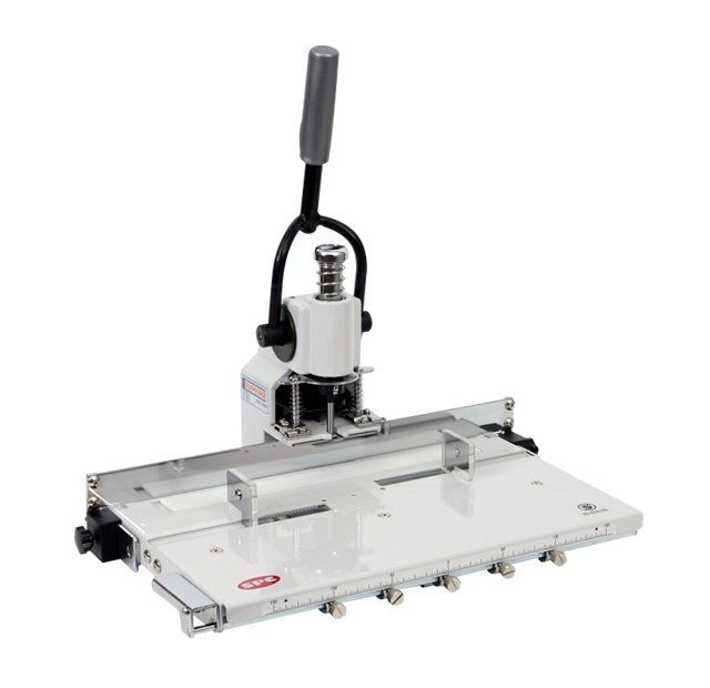 Profesjonalny dziurkacz z solidną metalową konstrukcja oraz specjalnie zaprojektowana dźwignia zapewniają dziurkowanie bez konieczności użycia dużej siły. W tylnej części znajduje się pojemnik na odpady. Urządzenie przeznaczone do wykonywania maksymalnie pięciu dziur w arkuszach w wybranym miejscu. Specjalnia zaprojektowany stół z możliwością zapamiętania typowych ustawień i płynnego przesuwania stosu razem ze stołem od pozycji do pozycji.- Maksymalna moc przebicia : 300 arkuszy o gramaturze 75gsm