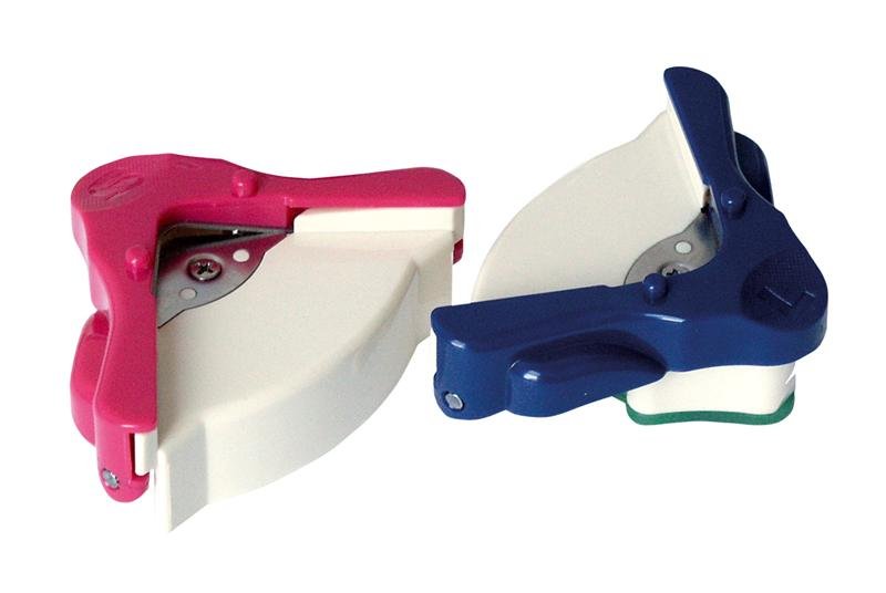 Mały ręczny zaokrąglacz w plastikowej obudowie, funkcjonalny pojemnik na ścinki, możliwość zaokrąglania narożników, pojedynczych arkuszy papieru, zdjęć, kartek pocztowych, folii, itp.