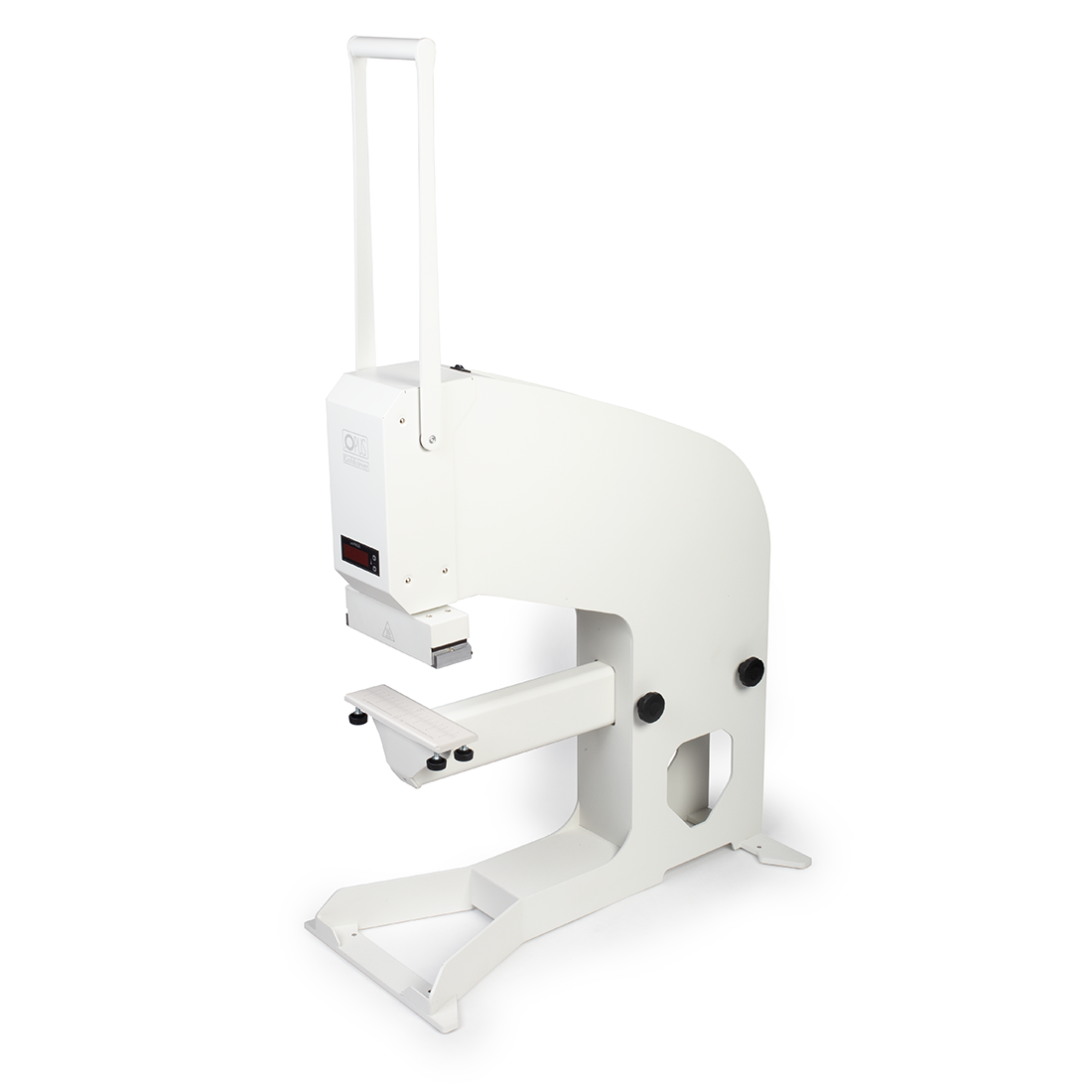 Konstrukcja prasy tłoczącej oparta jest o sprawdzony i niezawodny mechanizm mimośrodowy. Wszystkie parametry pracy urządzenia zaprogramujesz za pomocą sterownika mikroprocesorowego z wyświetlaczem cyfrowym – dzięki niemu łatwo ustawisz temperaturę grzałki (20 – 150°C) i czas tłoczenia (0,5 – 10 sekund), podejrzysz także liczbę wykonanych dotychczas złoceń. Możliwa jest również zmiana skali, w jakiej wyświetlana jest temperatura – dostępne są stopnie Celsjusza i Fahrenheita.