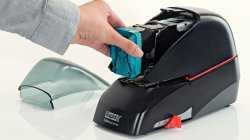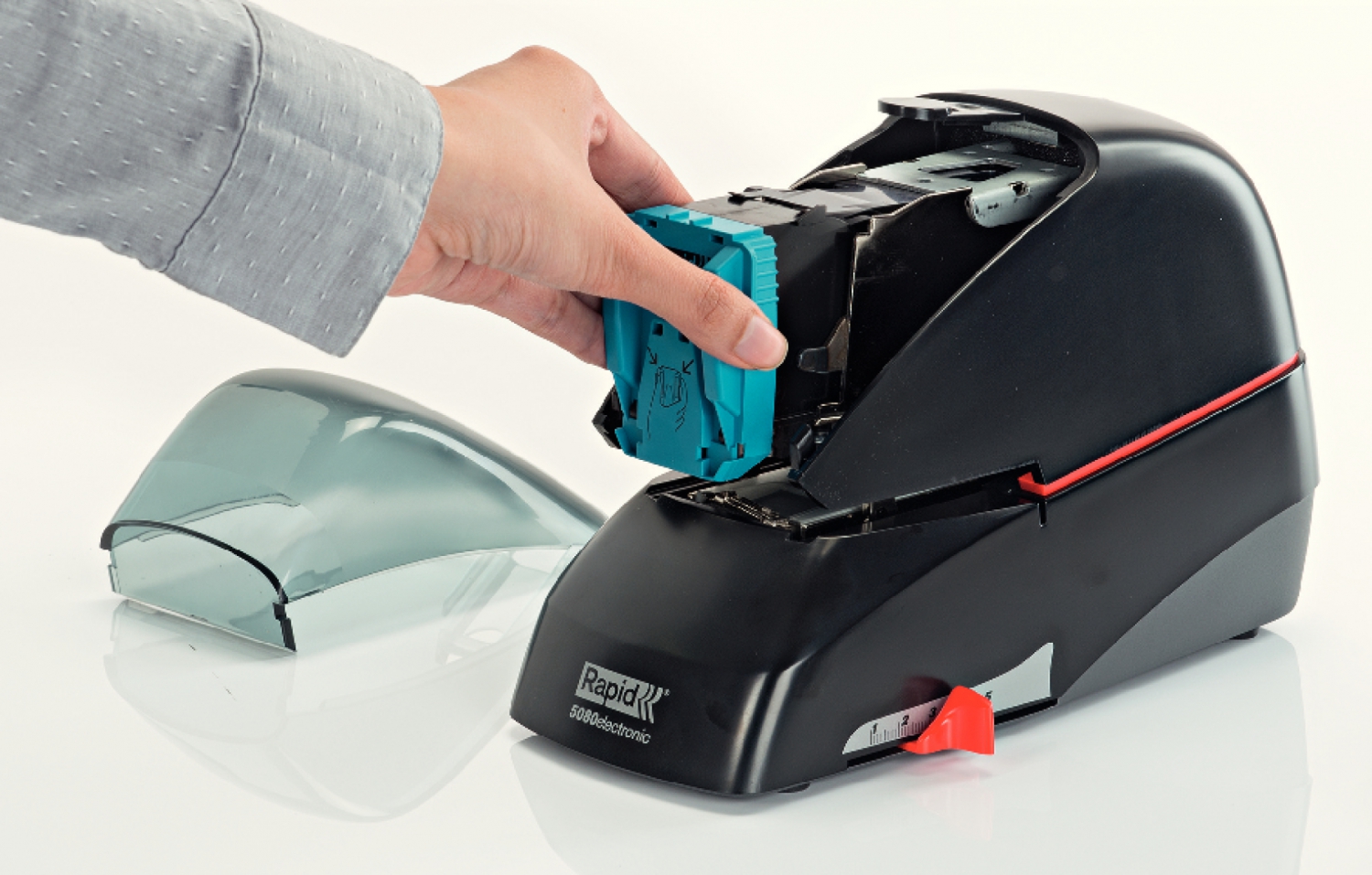 Innowacyjny zszywacz elektryczny bazujący na technologii wykorzystującej zszywki w kasetach. Zapewnia zszycie 5000 razy przy użyciu 1 kasety. Niezależnie od grubości zszywanego pliku wykorzystywane są te same zszywki. Testowany na użycie 500 000 razy.