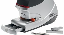 • Precyzyjnie umieszcza zszywki na papierze przy pomocy zintegrowanej prowadnicy zszywek