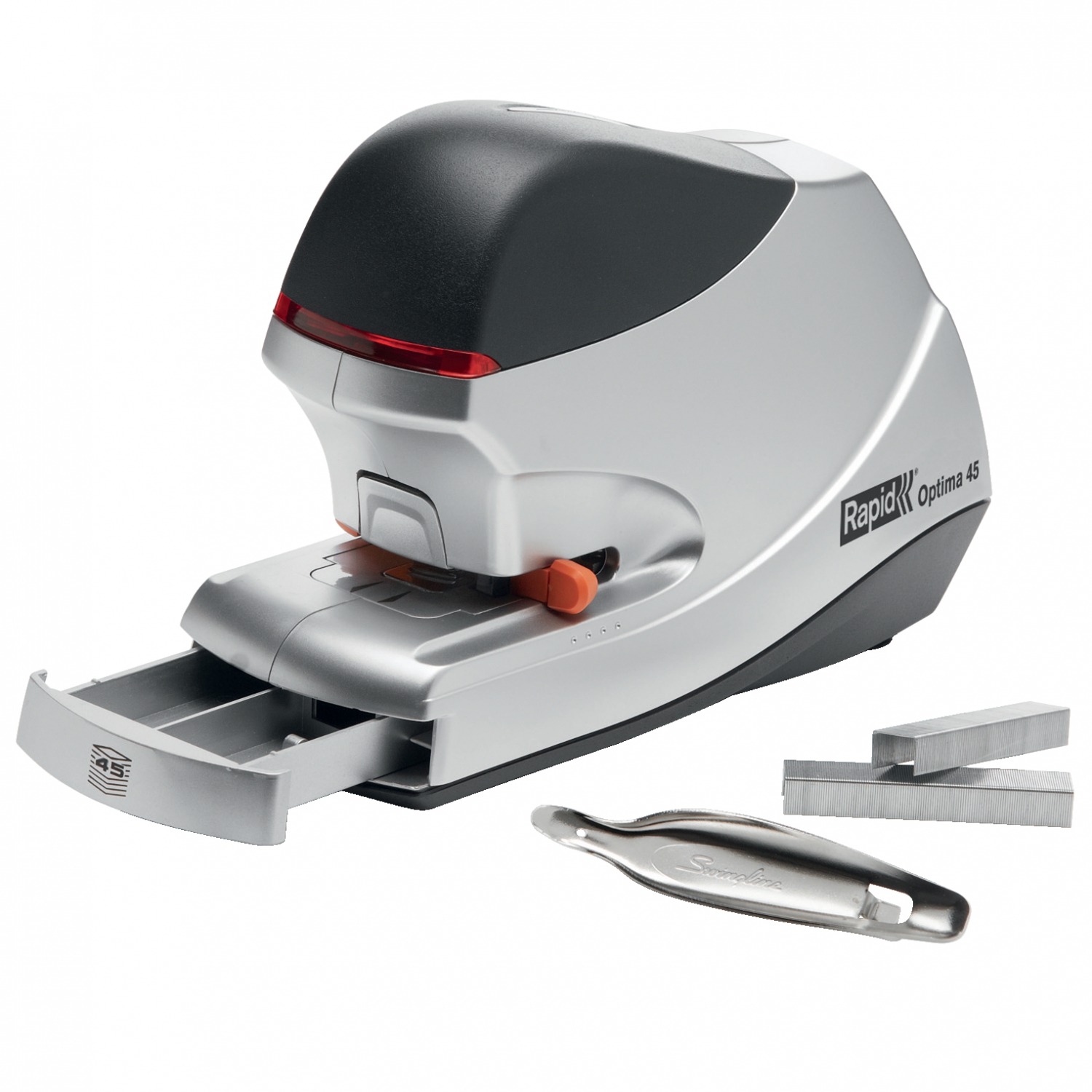 Zapewnia bezwysiłkowe zszywanie grubych dokumentów o objętości do 45 kartek. Precyzyjnie umieszcza zszywki na papierze przy pomocy prowadnicy zszywek. Stosowanie zszywek Optima HD70 gwarantuje zszywanie wolne od zacięć. Wyposażony w ledowy wskaźnik ilości zszywek informujący o ich niskim poziomie w magazynku.