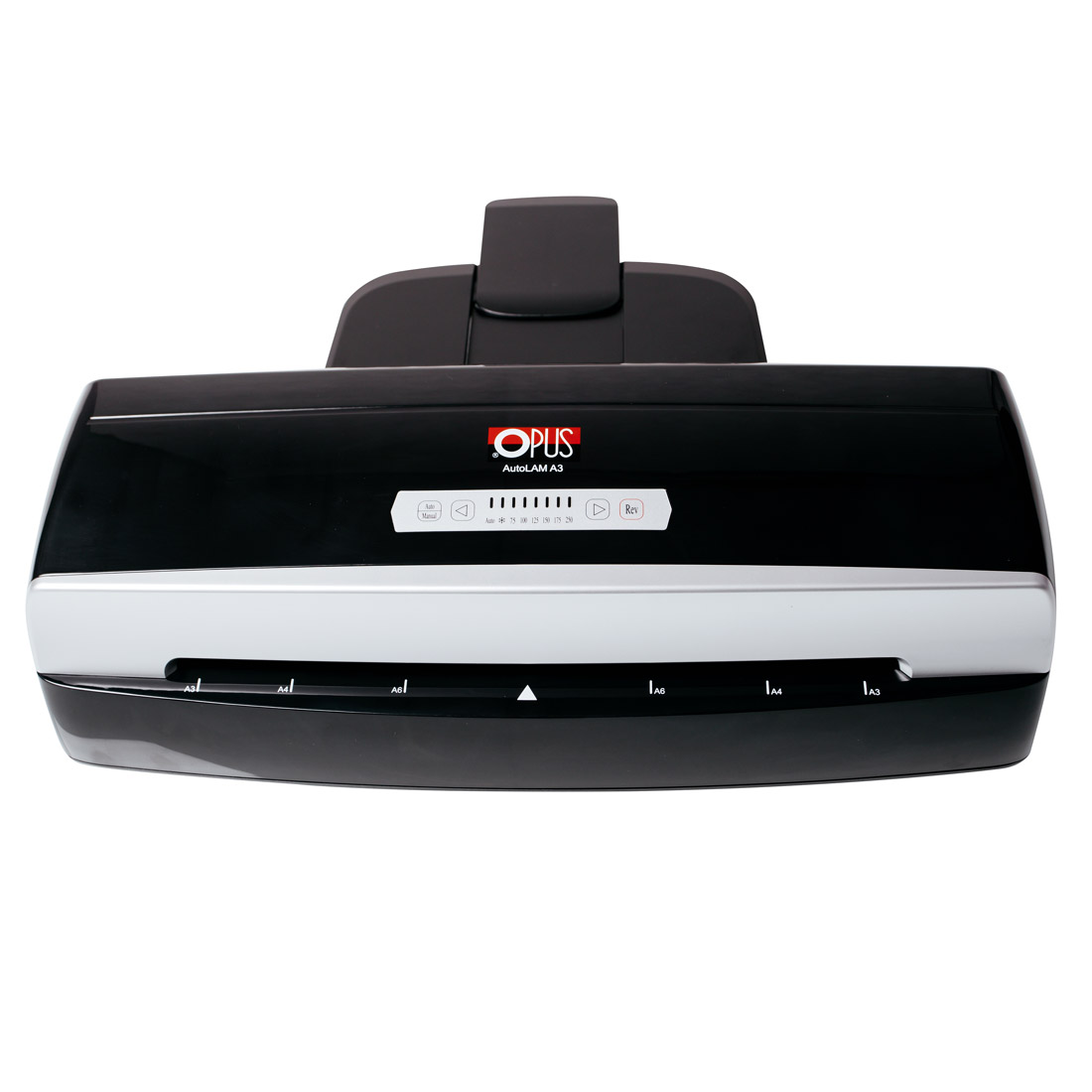 Laminator biurowy do formatu A3. Pracuje w technologii ogrzewanych wałków, nie wymaga użycia nośnika papierowego lub foliowego. Tryb automatyczny “Auto Sense” wykrywa grubość folii i informuje użytkownika o ewentualnych błędach. W trybie ręcznym mamy do dyspozycji sześć zaprogramowanych trybów laminacji (dla folii: 75 µm, 100 µm, 125 µm, 150 µm, 175 µm oraz 250 µm).