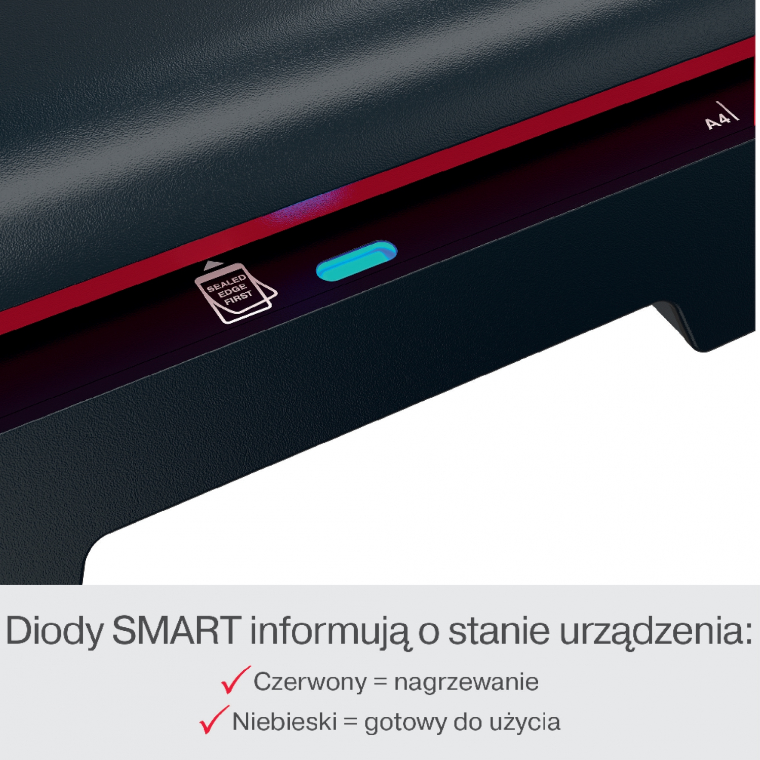 - Diody SMART informują o stanie urządzenia: świecą na czerwono podczas nagrzewania urządzenia oraz zmieniają kolor na niebieski, który wraz z sygnałem dźwiękowym informuje o gotowości do użycia.