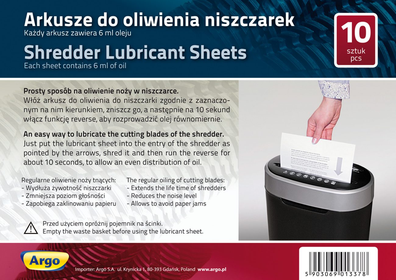 Arkusze formatu A5 rozprowadzające olej na nożach tnących niszczarek.