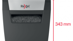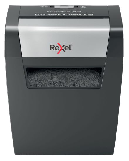 Posiada moc, aby niszczyć więcej! Niszczarka Rexel Momentum X308 niszczy do 8 kartek jednocześnie i może pracować nieprzerwanie przez 3 minuty - idealnie nadaje się do użytku domowego. Tnie na konfetti 5 x 42 mm, gwarantując tym bezpieczeństwo na poziomie P3. Posiada 15-litrowy pojemnik na ścinki, który mieści do 100 kartek A4.