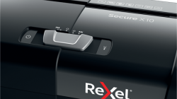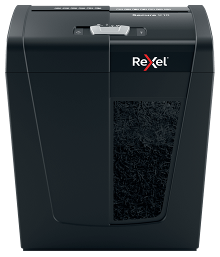 inia niszczarek Secure firmy Rexel doskonale nadaje się do niszczenia osobistych dokumentów i poufnych informacji w domu. Model Secure X10 niszczy jednocześnie - po ręcznym podaniu przez szczelinę podajnika - do 10 arkuszy papieru A4 (80 gsm), tnąc je na konfetti o wymiarach 4 x 40 mm, co zapewnia poziom bezpieczeństwa P-4. Ta niewielka, kompaktowa niszczarka idealnie nadaje się do użytku domowego i w domowym biurze; znakomicie się także sprawdzi jako niszczarka osobista w biurach, mieszcząc się wygodnie pod biurkiem. 18-litrowy pojemnik umożliwia rzadsze opróżnianie ze ścinków. Niszczarka przeznaczona jest do sporadycznego lub umiarkowanego użytkowania.