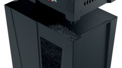 18-litrowy pojemnik na ścinki (mieszczący 150 pociętych kartek A4) ze zdejmowaną głowicą niszczarki i okienkiem umożliwiającym podgląd zawartości.
