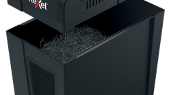 14-litrowy pojemnik na ścinki (mieszczący 125 pociętych kartek A4) ze zdejmowaną głowicą niszczarki i okienkiem umożliwiającym podgląd zawartości.