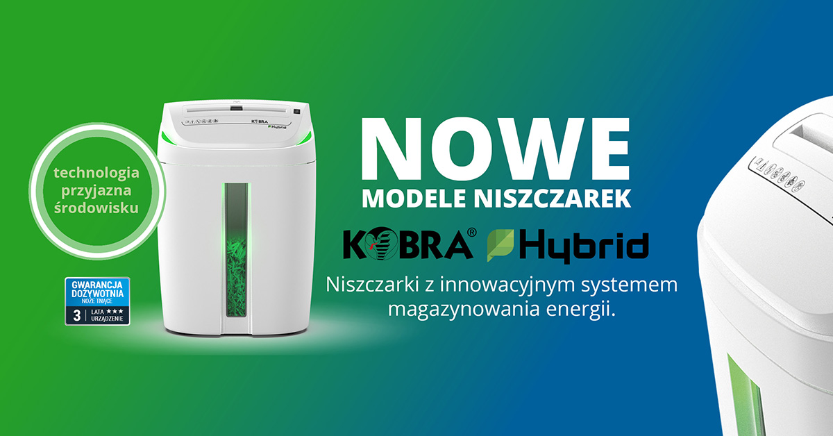 NISZCZARKA KOBRA HYBRID szerokość wejścia: 230 mm wielkość ścinka: 3,5 x 40 mm ilość niszczonych kartek (A4/70g): 8-9 poziom bezpieczeństwa DIN 66399: P-4/ T-4/ E-3/Specyfikacja