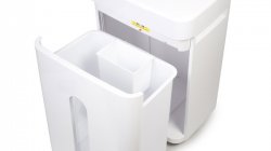 Niszczarka wyposażona jest w kosz o pojemności 33 litrów oraz dodatkowy kosz na ścinki plastikowe powstałe z nośników innych niż papier, co znacząco ułatwia segregację odpadów.
