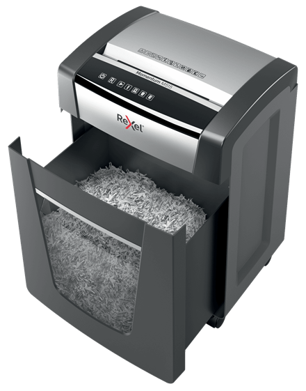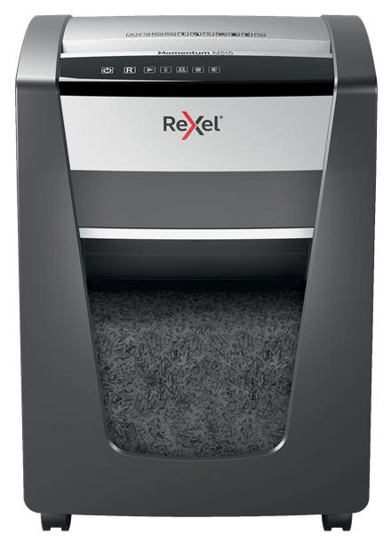 Niszczarki Rexel Momentum z technologią zapobiegania zacięciom są idealne do niszczenia poufnych dokumentów w biurze. Model P515+ niszczy jednocześnie do 15 kartek A4 (80 g/m²) podawanych ręcznie. Tnie na mikrościnki o wymiarach 2 x 15 mm, zapewniając poziom bezpieczeństwa P-5. Aby zapobiec zacięciom w niszczarce, czujnik na bieżąco monitoruje liczbę podawanych kartek. Urządzenie działa tylko wtedy, gdy liczba kartek nie przekracza ustalonego limitu – o przekroczeniu limitu informuje czerwona kontrolka LED. Duża pojemność podajnika, długi czas nieprzerwanej pracy - do 4 godzin oraz duży, 30-litrowy pojemnik na ścinki pozwalają na użytkowanie niszczarki w zakresie od umiarkowanego do intensywnego. Nie ma potrzeby usuwania zszywek i spinaczy z dokumentów.