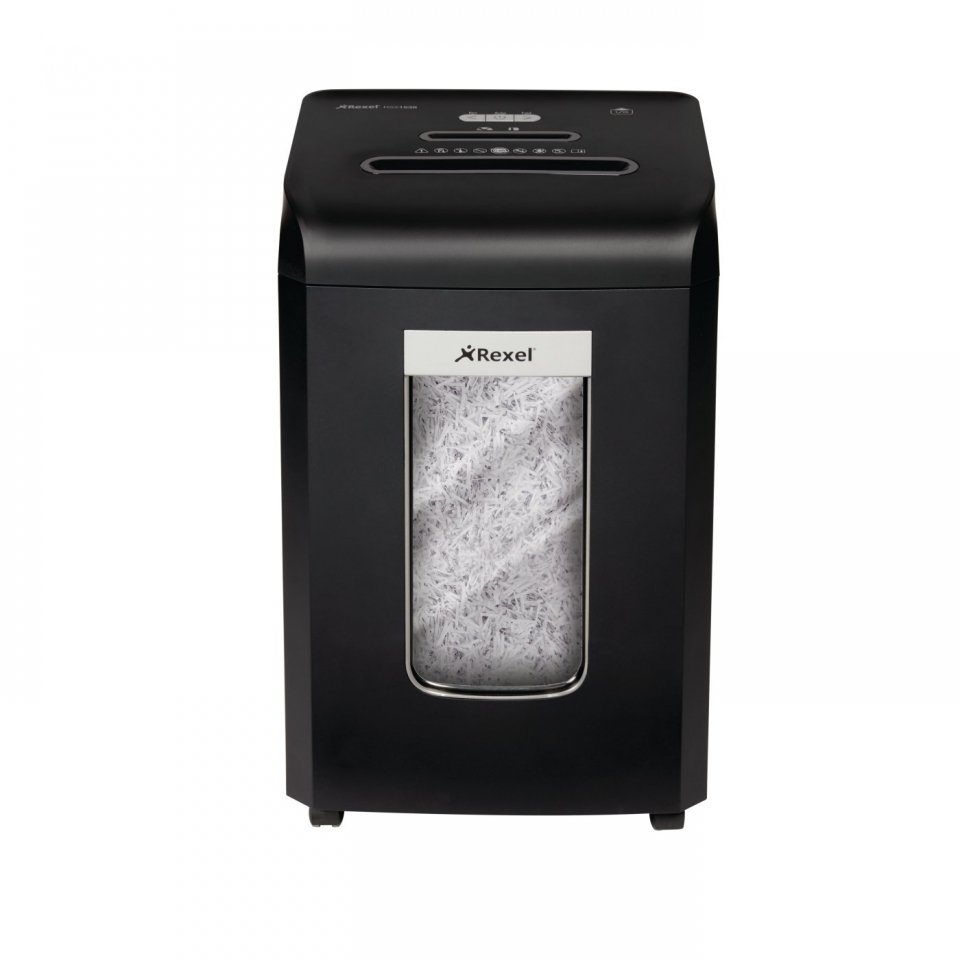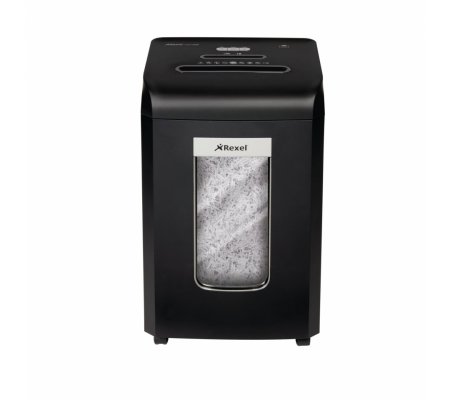 38-litrowy pojemnik na ścinki (mieszczący 675 pociętych kartek A4) ze zdejmowaną głowicą niszczarki i okienkiem umożliwiającym podgląd zawartości.