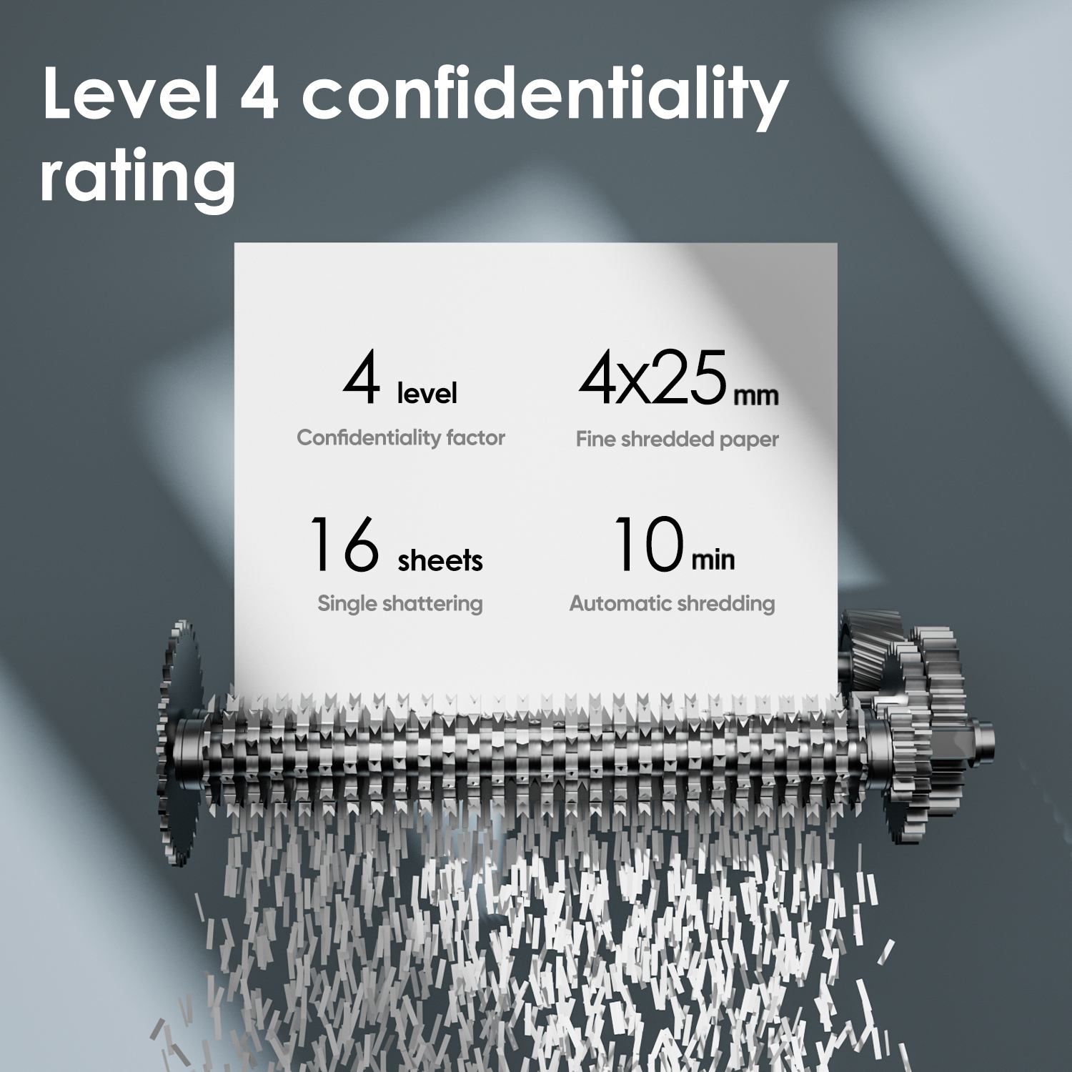 - poziom bezpieczeństwa wg DIN 66399: P-4 – wysoki poziom ochrony danych