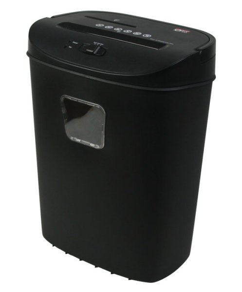 Niszczarka przybiurkowa cross-cut. System paskowo-odcinkowy zapewnia wyższy stopień tajności i kilkakrotnie mniejszą objętość ścinków. Niszczy karty kredytowe i płyty CD.