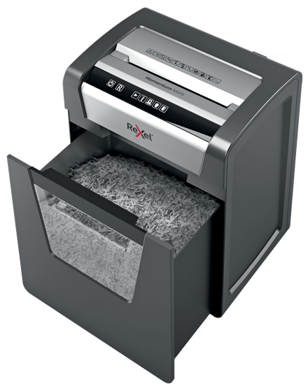 Posiada moc, aby niszczyć więcej! Niszczarka Rexel Momentum M510 niszczy do 10 kartek jednocześnie i może pracować nieprzerwanie przez 2 godziny - idealnie nadaje się do małego biura. Model M510 wyposażony jest w technologię zapobiegania zacięciom, która gwarantuje pracę bez zbędnych przestojów. Tnie na ścinki 2 x 15 mm, gwarantując tym bezpieczeństwo na najwyższym poziomie P5 oraz większą ładowność pojemnika na ścinki. Pracuje cicho, jest łatwa w obsłudze za pomocą dotykowego panelu sterowania i posiada 23-litrowy pojemnik na ścinki, który mieści do 250 kartek A4
