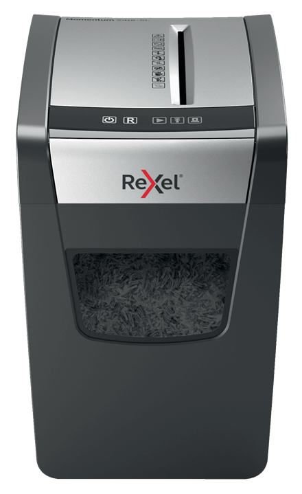Posiada moc, aby niszczyć więcej! Niszczarka Rexel Momentum X312-SL (wąska) niszczy do 12 kartek jednocześnie i może pracować nieprzerwanie przez 6 minut, a jej smukły kształt sprawia, że idealnie nadaje się do użytku domowego. Model X312-SL wyposażony jest w technologię zapobiegania zacięciom, która gwarantuje pracę bez zbędnych przestojów. Tnie na konfetti 5 x 42 mm, gwarantując tym bezpieczeństwo na poziomie P3. Pracuje cicho, jest łatwa w obsłudze za pomocą dotykowego panelu sterowania i posiada 23-litrowy pojemnik na ścinki, który mieści do 200 kartek A4