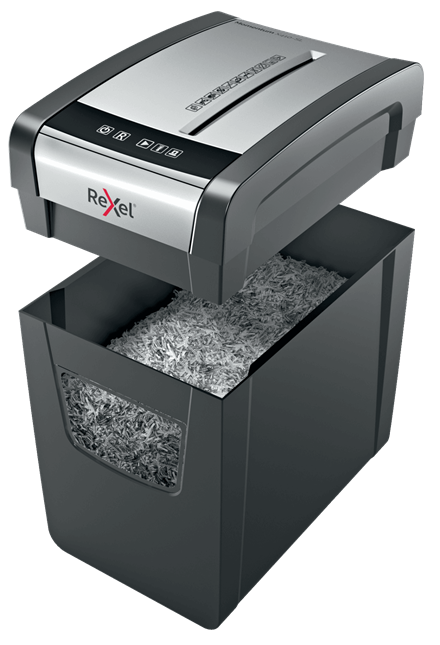 Posiada moc, aby niszczyć więcej! Niszczarka Rexel Momentum X410-SL (wąska) niszczy do 10 kartek jednocześnie i może pracować nieprzerwanie przez 6 minut, a jej smukły kształt sprawia, że idealnie nadaje się do użytku domowego. Model X410-SL wyposażony jest w technologię zapobiegania zacięciom, która gwarantuje pracę bez zbędnych przestojów. Tnie na konfetti 4 x 28 mm, gwarantując tym bezpieczeństwo na poziomie P4. Pracuje cicho, jest łatwa w obsłudze za pomocą dotykowego panelu sterowania i posiada 23-litrowy pojemnik na ścinki, który mieści do 225 kartek A4.