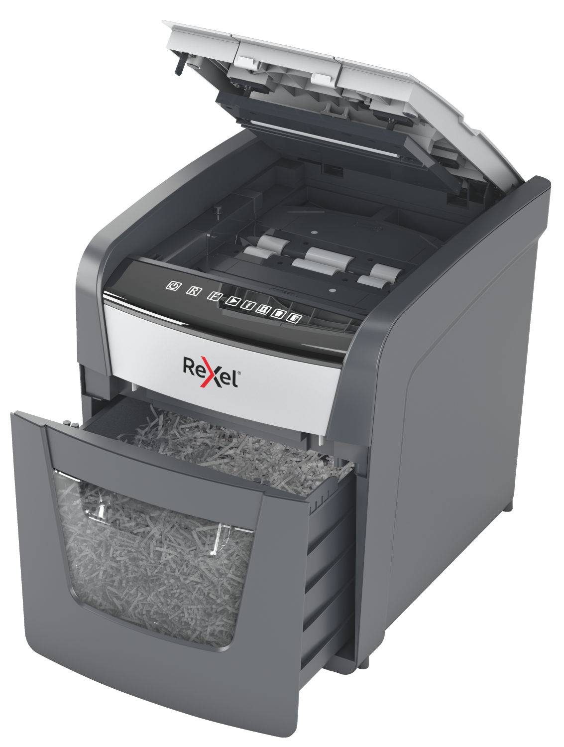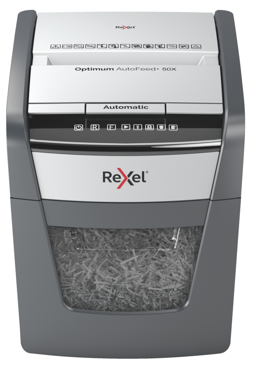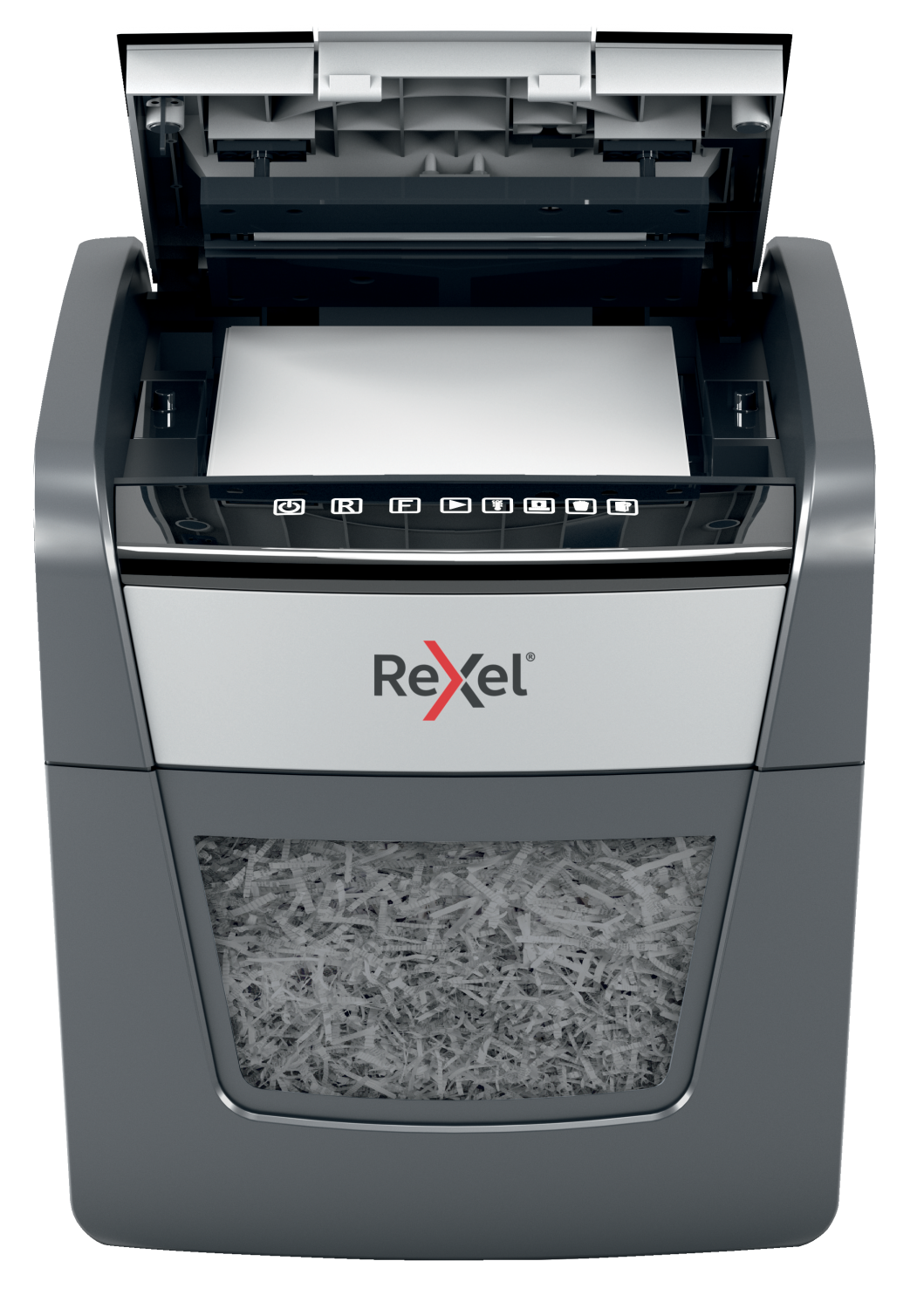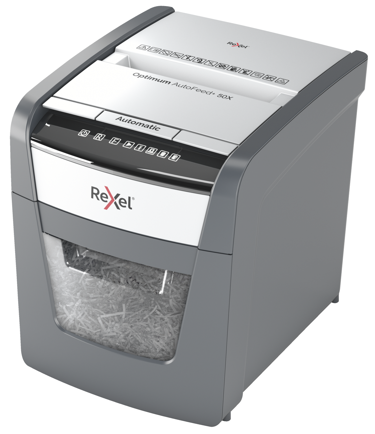 Niszczarka automatyczna do papieru Optimum AutoFeed 50X jednorazowo niszczy automatycznie do 45 kartek A4 (80 gsm), tnąc arkusze na konfetti (o wymiarach 4 x 28 mm), co zapewnia poziom bezpieczeństwa P-4. Wyposażona jest w automatyczny podajnik i kompaktowy, 20-litrowy pojemnik na ścinki, co sprawia, że idealnie nadaje się do użytku w domu lub w domowym biurze. Nie wymaga ręcznego podawania papieru ani wcześniejszego usuwania zszywek i spinaczy - ta automatyczna niszczarka całą pracę wykona za Ciebie