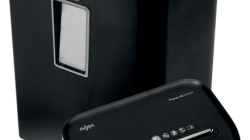 - 23-litrowy pojemnik na ścinki (mieszczący 240 pociętych kartek A4) ze zdejmowaną głowicą niszczarki i okienkiem umożliwiającym podgląd zawartości.