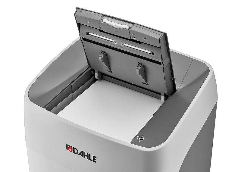 • Funkcja automatycznego podawania papieru umożliwia niszczenie do 300 arkuszy (80 g/m²) przy jednym załadunku, z blokowanym podajnikiem papieru