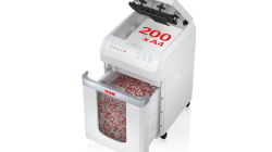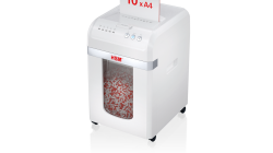 W pełni automatyczna niszczarka dokumentów gwarantuje bezproblemową ochronę danych. Wystarczy włożyć plik dokumentów, zamknąć pokrywę, a urządzenie resztę zrobi automatycznie. Niszczarka z automatycznym podajnikiem niszcząca do 300 arkuszy na ścinki o poziomie bezpieczeństwa P-4 (4 x 12 mm) gwarantuje bezpieczeństwo danych zgodne z wymogami RODO