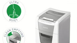 W pełni automatyczna niszczarka do papieru firmy Leitz z unikalną funkcją samooczyszczania.